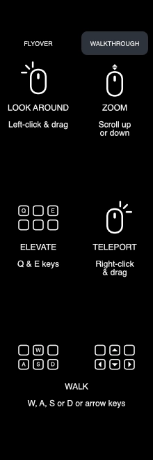 Please use these keys & mouse movements to navigate your model, or click on the ? icon in the viewer: